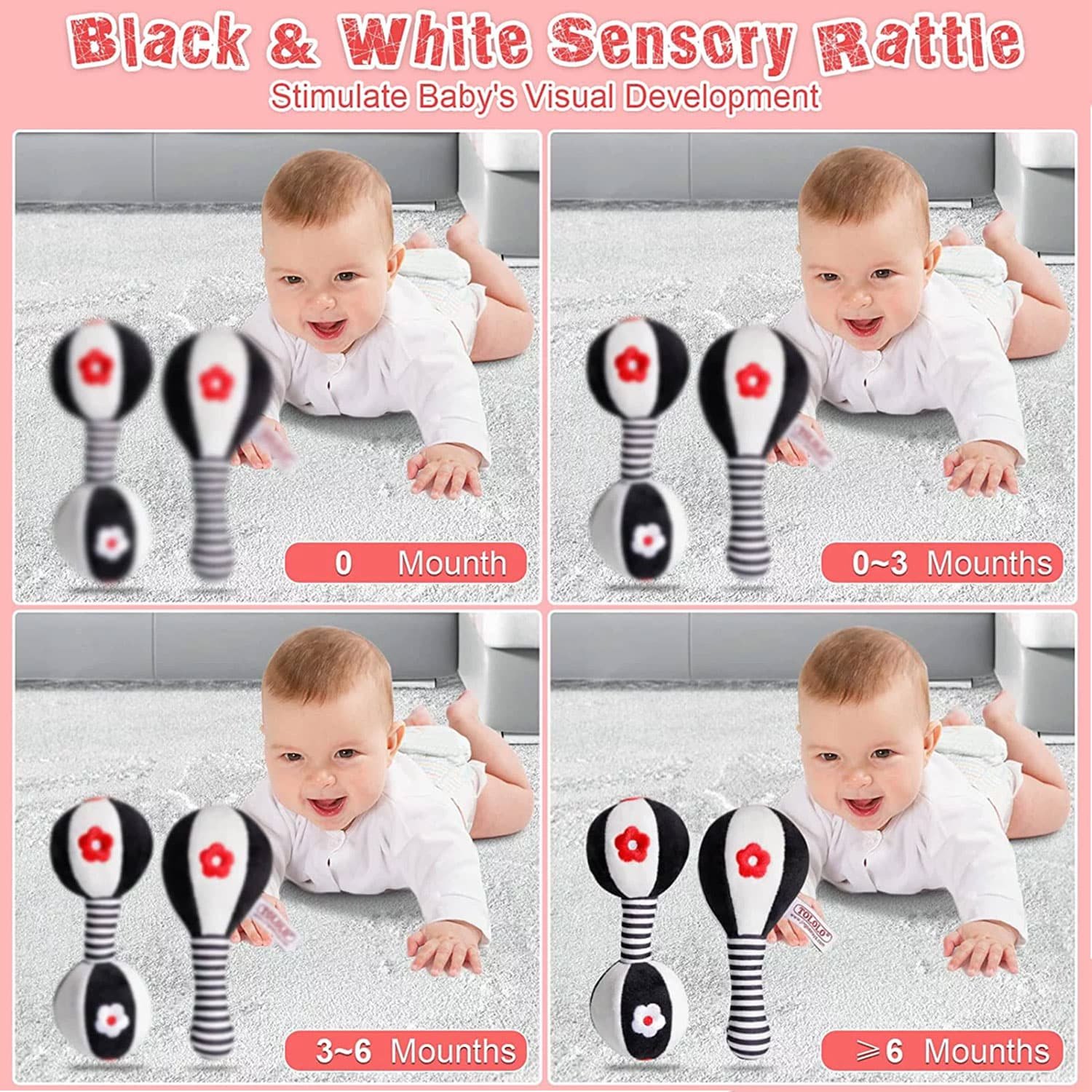 Introduce your little one to a world of sensory exploration with the BUBABOX Baby Dumbbell Toy Rattle Set. Specifically designed for newborns and babies aged 0-12 months, this set of black and white soft rattles is not just a plaything; it’s a developmental tool that engages and captivates young minds.