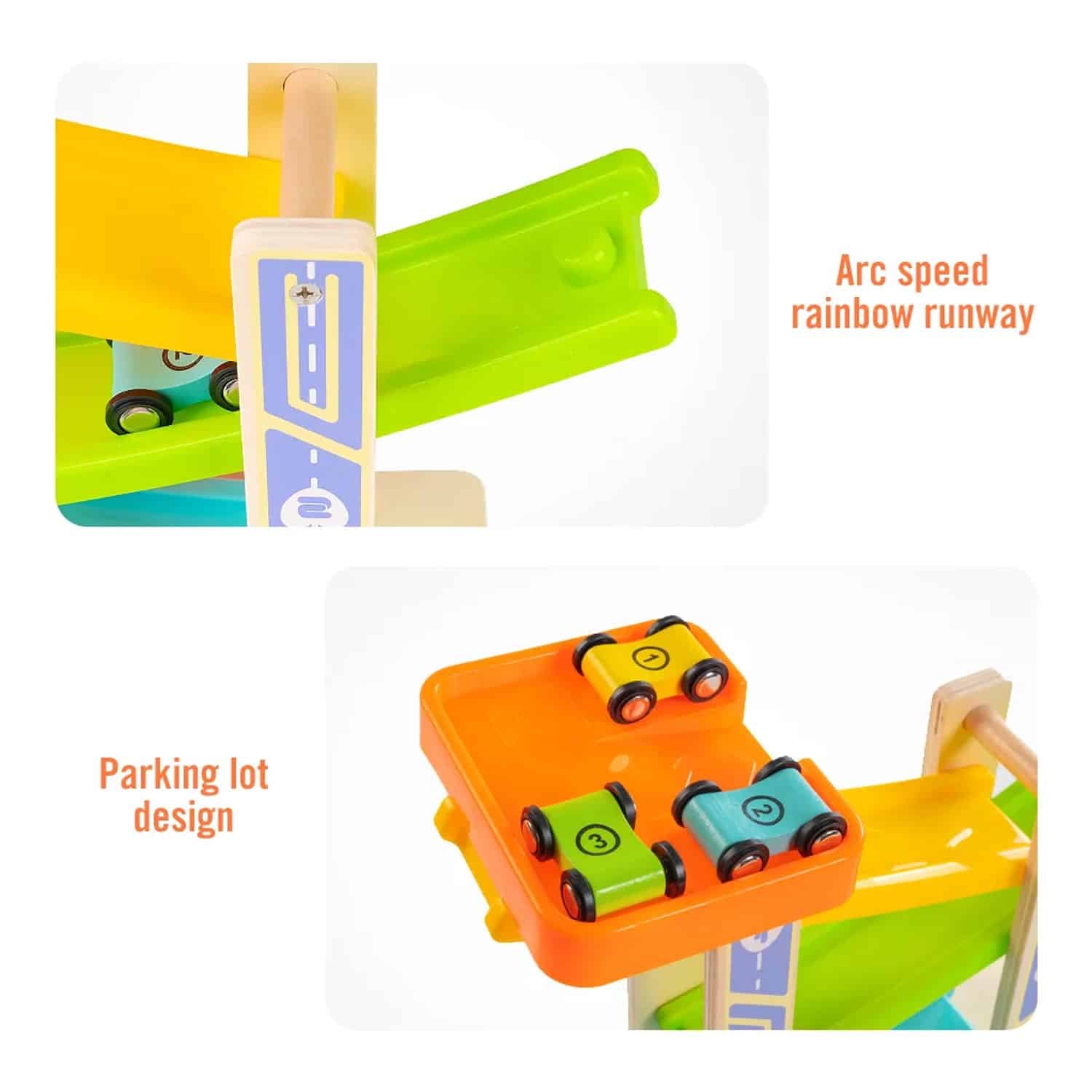 Ignite the joy of exploration with the Funsmile Race Track Car Ramp Toy – a wooden wonder designed for 2-3-year-old boys and girls. This engaging and colorful toy set not only entertains but also enhances fine motor skills and hand-eye coordination through interactive play.