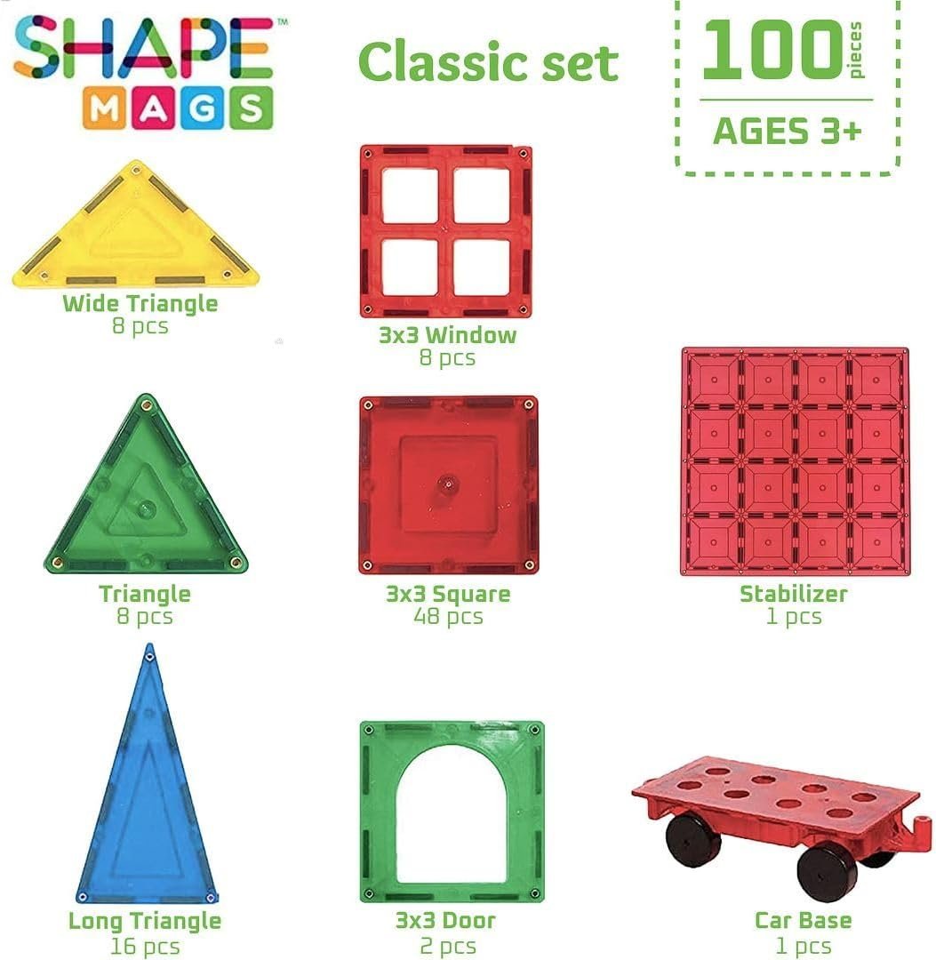 Shapemags Magnetic Tiles for Kids 100 Piece Set