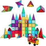 - The ultimate kids magnetic building tiles set – Our toy magnet set comes with 48 squares, 16 triangles, 8 wide triangles, 16 long triangles, 8 window tiles, 2 doors, 1 car base, and 1 stabilizer plate