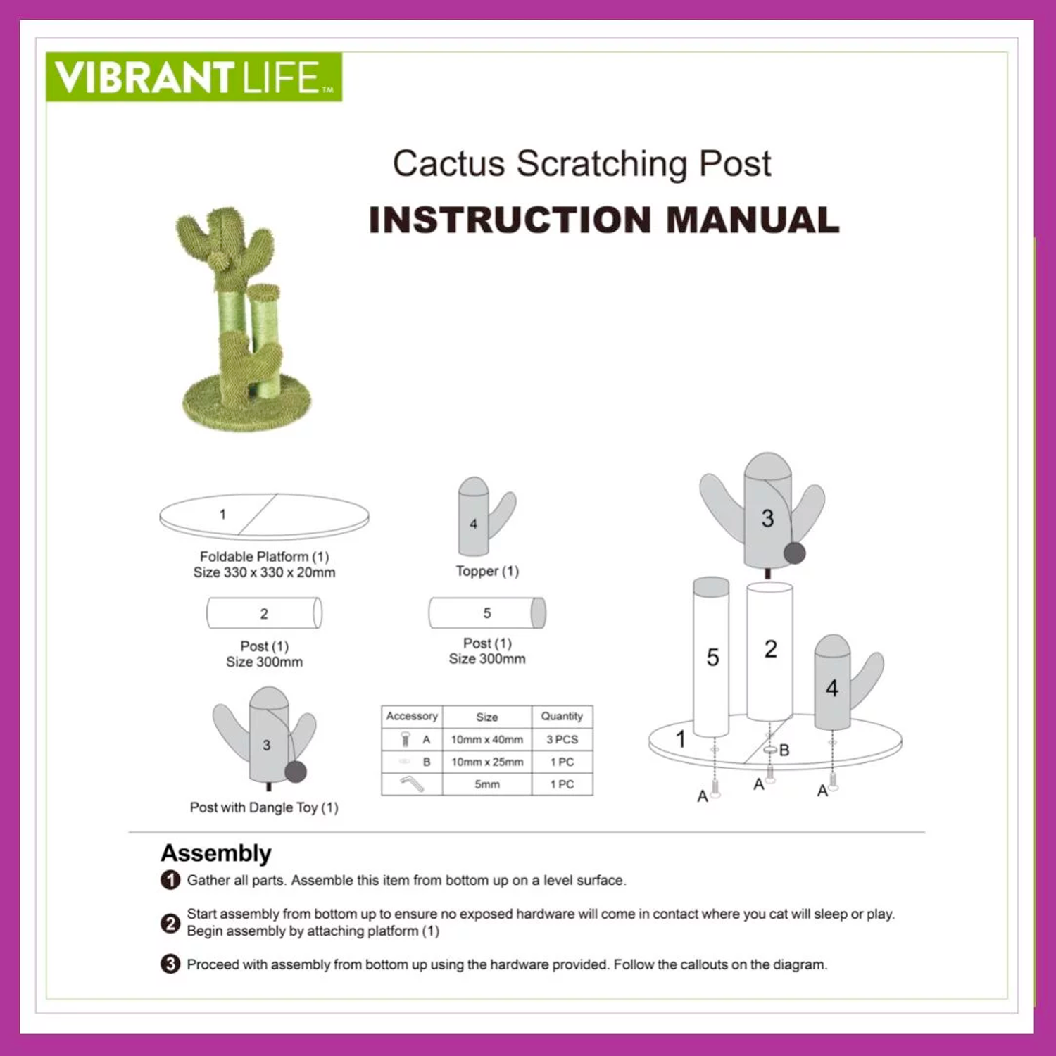 Introducing the Vibrant Life Cactus 3-Arm Cat Scratching Post – the perfect blend of playfulness and functionality for your feline friend.
