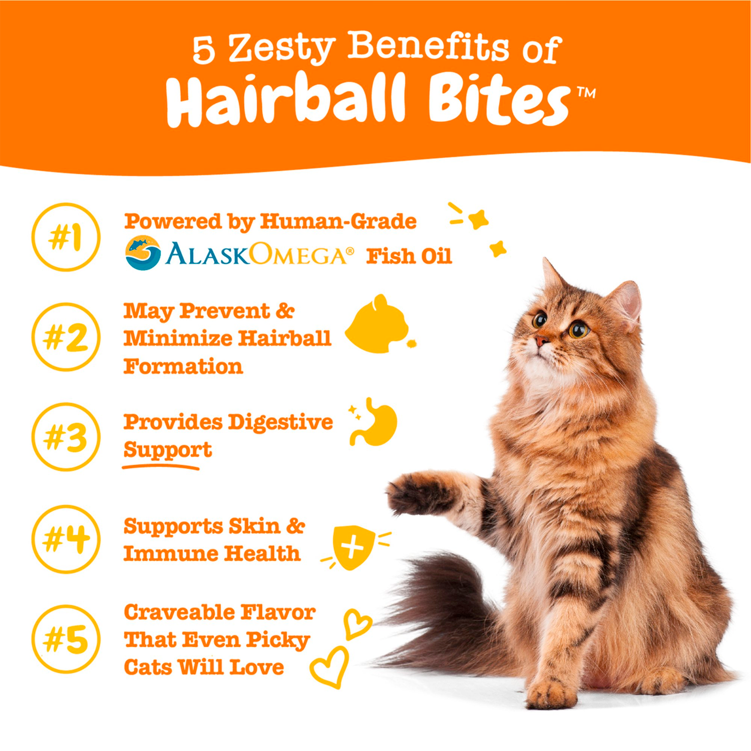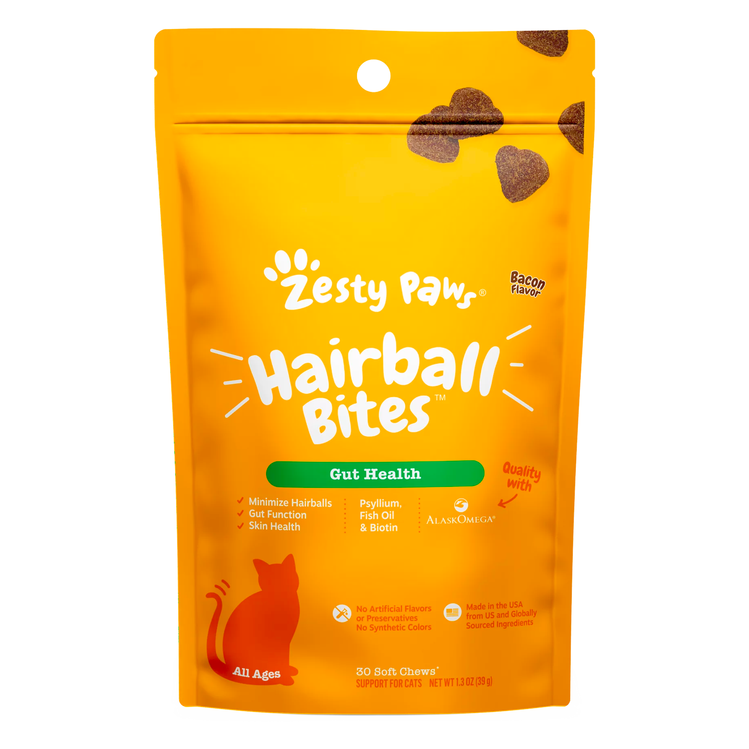 Say goodbye to hairball woes with Zesty Paws Hairball Bites for Cats, a delightful treat supplement specially formulated to support digestive health.
